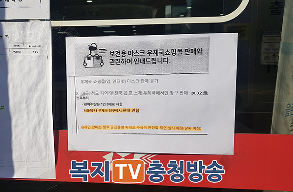 [복지tv충청방송] 신유민 기자 = 신종 코로나바이러스 감염증(코로나19) 여파로 방역 마스크가 품귀 현상을 빚어 정부가 하루 350만 장을 공적 유통망에 공급하겠다고 한 이튿날에도 시민들은 온라인 우체국쇼핑몰과 약국 현장 등에서 마스크를 구매하기 어려웠다. 우체국·농협 온라인 등 온라인 구매처 접속자 수가 폭증했고 일선 약사들은 마스크 단가는커녕 공급 예정 물량도 듣지 못했다고 하소연했다.