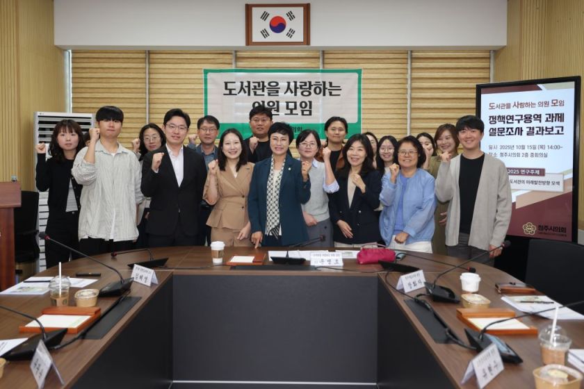 충북 청주시의회 의원 연구단체인 '도서관을 사랑하는 의원 모임(대표 송병호)'은 15일 청주시 공공도서관의 미래발전방향 모색을 위한 설문조사 결과 보고회를 개최했다.