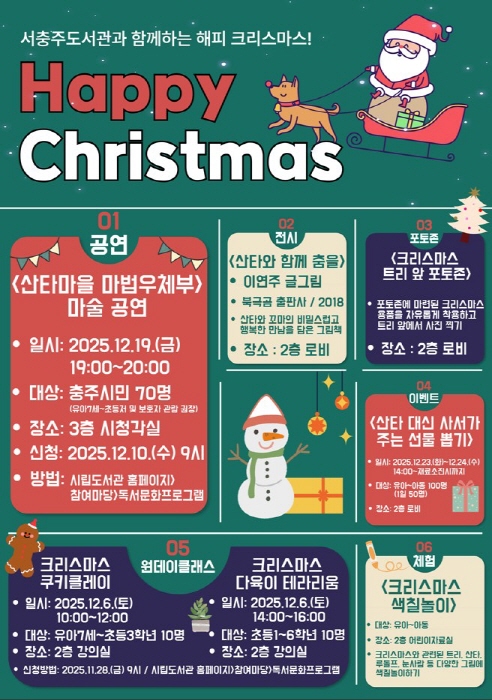 서충주도서관(관장 최은숙)은 12월 한 달간 연말 맞이 크리스마스 특별 행사를 운영한다고 밝혔다.