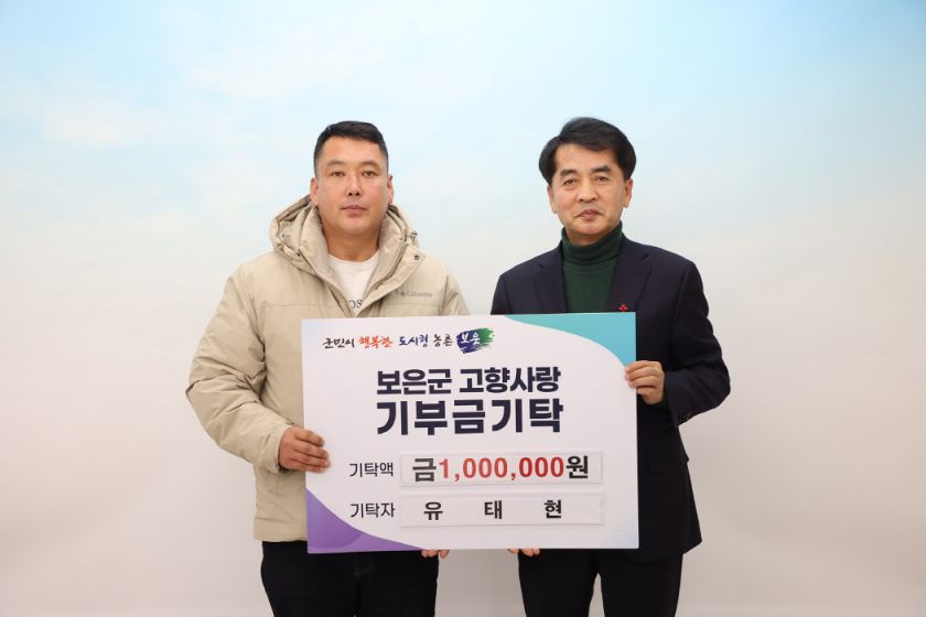 유태현 씨는 “고향에서 보낸 학창 시절과 가족의 뿌리가 모두 보은에 있다”며 “비록 타지에서 생활하고 있지만, 고향 발전에 작은 보탬이 되고 싶어 기부에 참여하게 됐다”고 말했다.